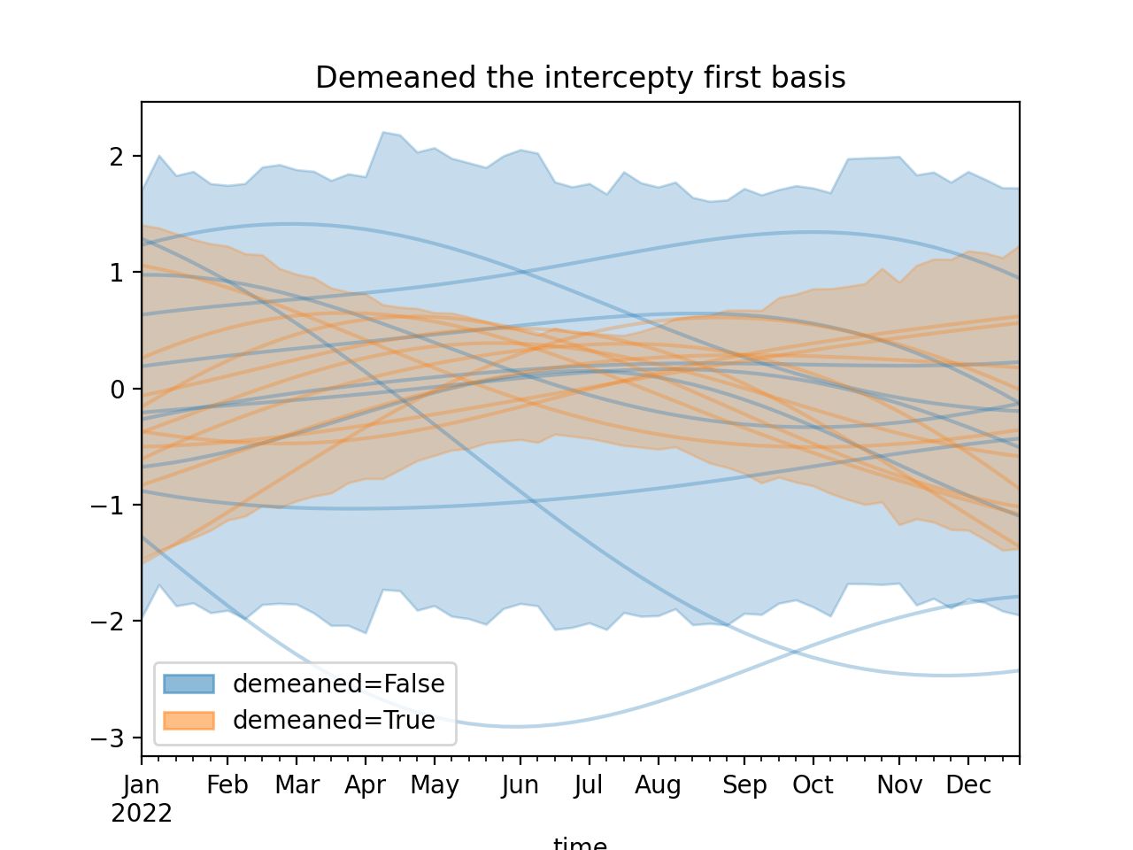 )Using a demeaned basis to remove “intercept” effect of first basis:
